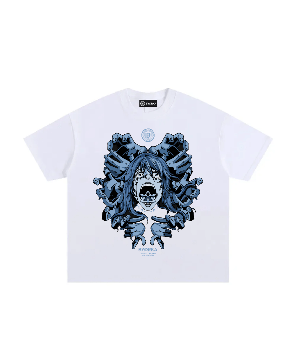 Camiseta inspirada en Mahito, la maldición nacida del odio y el miedo humano.